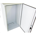 Vonkajší nástenný rozvádzač vyrobený z válcovanej ocele s hrúbkou 1,5 mm. Trojvrstvová povrchová úprava. Prevedenie: dvere - plné, otvárajúce sa o 110°, 3-bodový zámok, zámok na zmenu smeru otvárania, tesnenie z penového polyuretánu záhlavný kryt - plný bočný kryt - plný horný kryt - plný