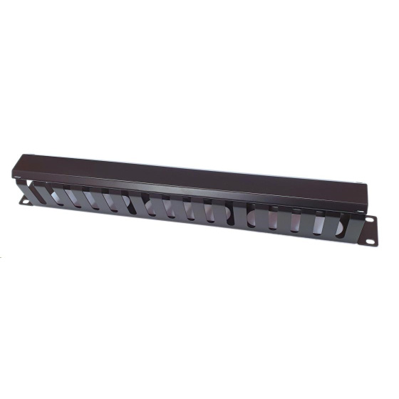 19" vyvazovací panel 1U, celokovový s krytem 40x70mm, průchozí, černý