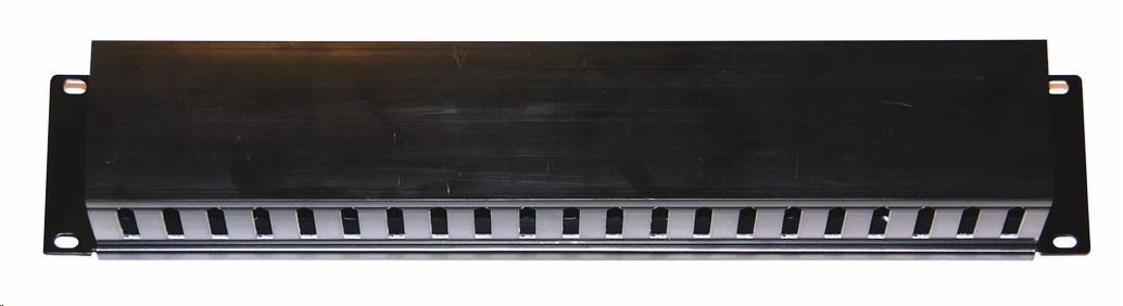 19" vyvazovací panel 2U, kovový s plastovým krytem, 90x45mm, průchozí, černý