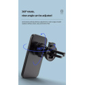 Vysoko kvalitná výkonná bezdrôtová magnetická nabíjačka do auta s podporou Apple MagSafe. Vybavená dvomi držiakmi, môžete si vybrať buď variant do ventilácie, alebo otočný a výsuvný držiak s prísavkou.