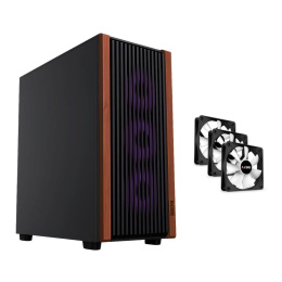 Skriňa G6 Noble spája moderné technické prvky s elegantným dizajnom. Predný panel s dreveným dekorom nielen decentne vyniká, ale zároveň umožňuje efektívne prúdenie vzduchu a jednoduché čistenie osadených filtrov. Vybrať si môžete z niekoľkých variantov, od variantu s pevným kovovým bočnicou a tromi štandardnými ventilátormi v príslušenstve, až po variantu so setom ARGB podsvietenia ventilátorov, ktorý je možné ľahko synchronizovať so systémami ako ASUS Aura Sync, MSI Mystic Light, GIGABYTE RGB Fusion či ASRock Polychrome Sync.