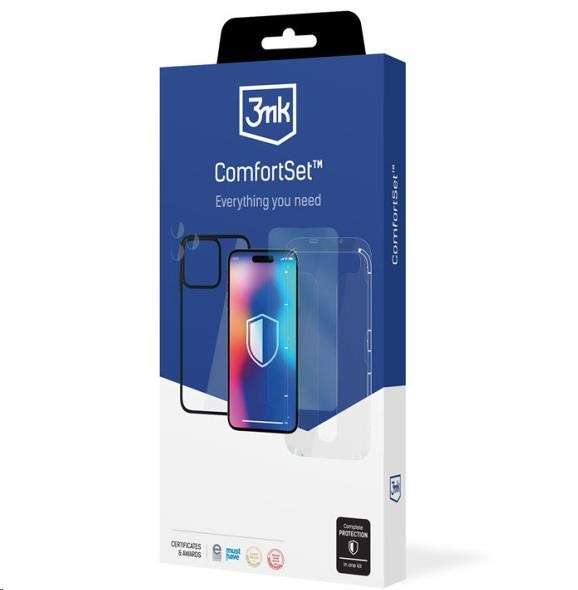 Comfort Set 4in1 je profesionálna sada na samostatné prevedenie komplexnej ochrany chytrého telefónu. Obsahuje vlajkové produkty 3mk Protection: obal Satin Armor Case+, hybridné sklo Resilient Glass na objektív fotoaparátu Lens Protection, tvrdené sklo na displej telefónu s tvrdosťou 9H a jednorazový aplikačný nástroj na inštaláciu skla. Vďaka sade Comfort Set 4in1 ochránite svoj chytrý telefón, aniž by ste museli niekam chodiť. Navyše sa ani príliš netrápite s inštaláciou skla – je to veľmi jednoduché a zvládnete to za niekoľko minút!