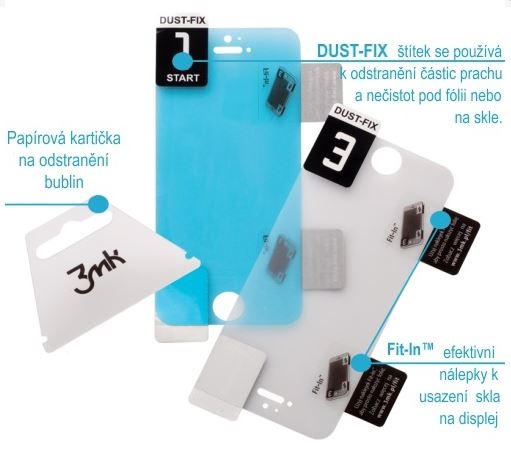 - Sada obsahuje: FlexibleGlass, kartičku na roztlačenie bublín, polohovacie samolepky Fit-In™ a samolepky Dust-Fix™, čistiaci a suchý handriček.