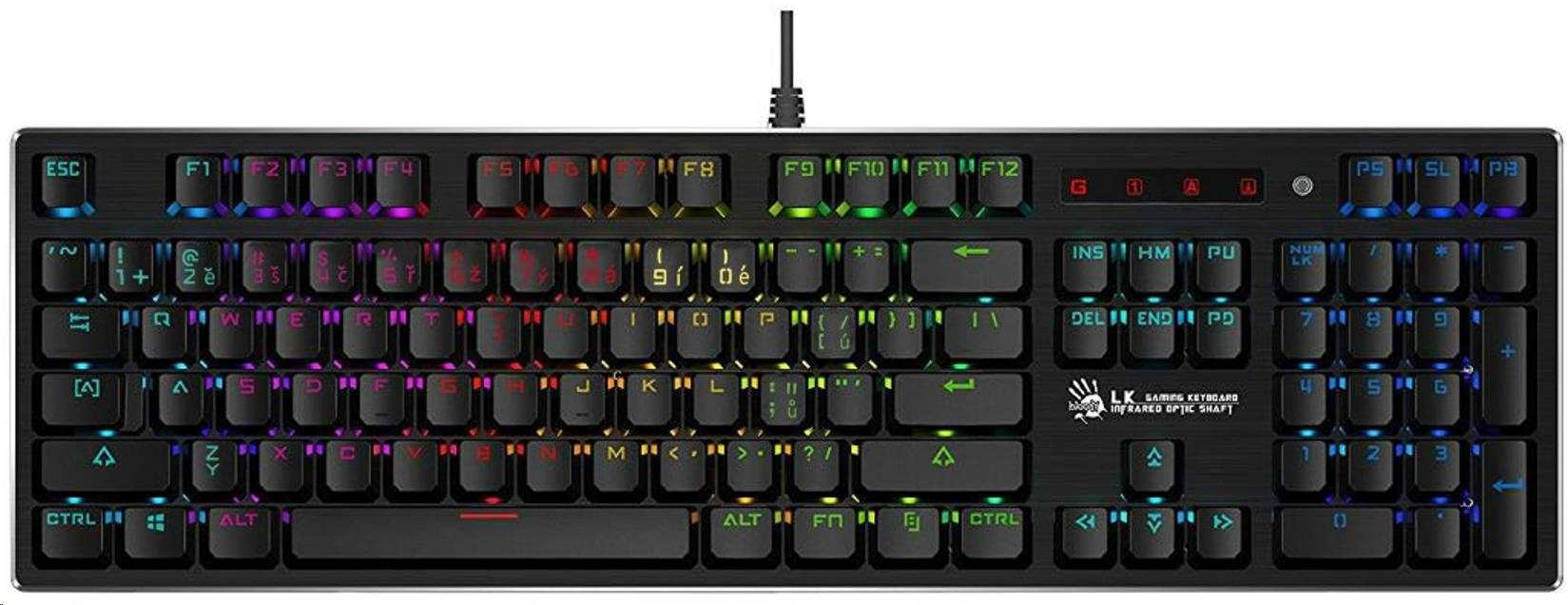Popis A4tech Bloody B820R mechanická RGB herní klávesnice, USB, CZ, RED SWITCH