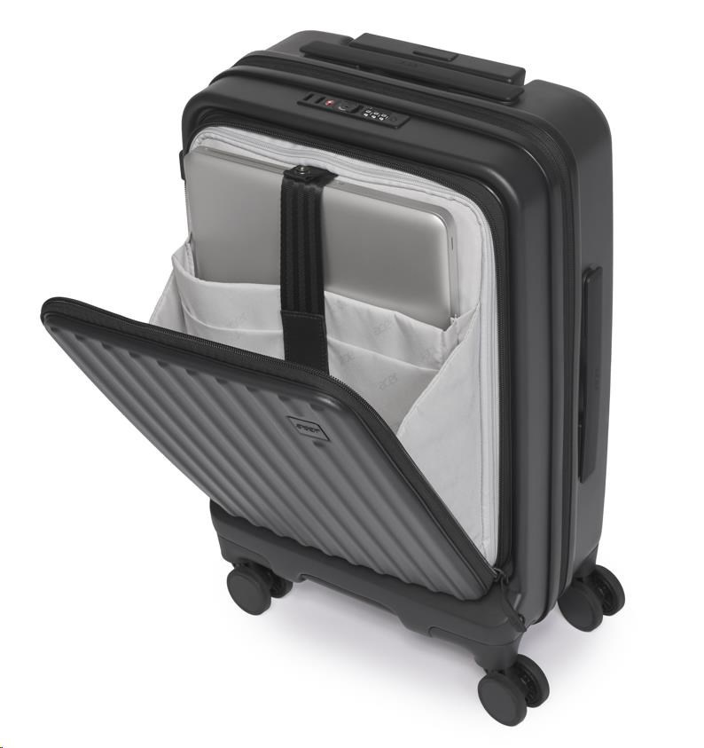 Acer Barcelona kufor na cestovanie 20", čierny, pevných rozmerov, materiál: 100% recyklovaný PET, TSA combi zámok, predné otváranie, vrecko na notebook / tablet, 4 dvojité otočné kolieska, 53,5 x 20,5 x 35,5 cm, 3,1 kg