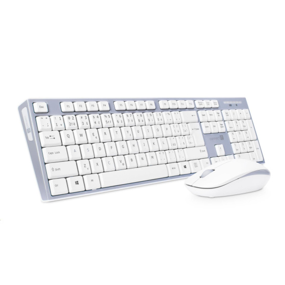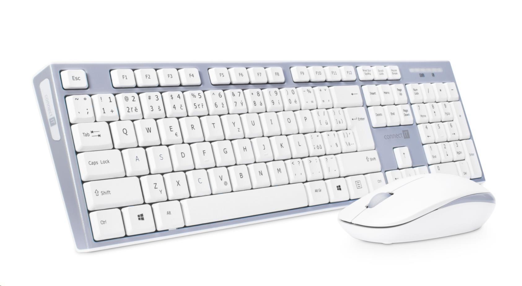 Súprava bezdrôtovej optickej myši a tenkej klávesnice v bielo-sivom dizajne