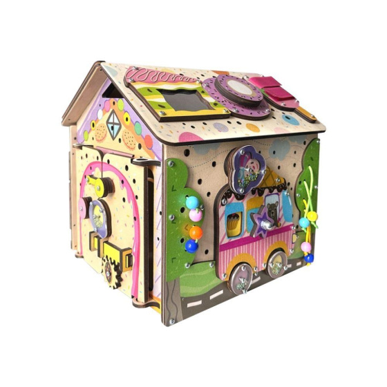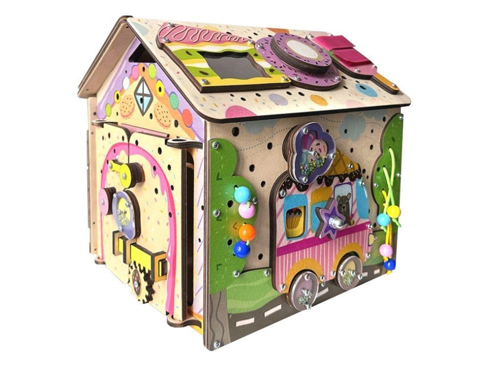Originálny svietiaci domček activity board zavádza deti do fantastického sveta sladkostí. So zmrzlinovým autom, s mlsným medvedíkom a so striebrou montessori a hracích prvkov sa deti vydajú za sladkým dobrodružstvom, pri ktorom sa skvele zabavia a zdokonalia svoje zručnosti. Každá strana activity boardu je originálna a ponúka nespočet možností na hru. Acitivity board domček Cukrovinky je navyše svietiaci, po zapnutí svetla sa vo vnútri domčeka rozsvieti ružové svetlo.