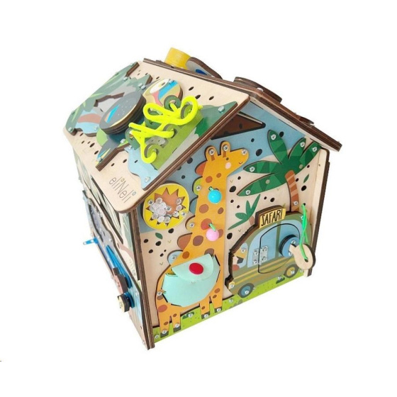 Activity board domček zavádza deti na safari, do divokej prírody s milými zvieratkami. Montessori prvky na activity board domčeku umožňujú deťom všestranne sa rozvíjať vďaka svojej prirodzenej zvedavosti.