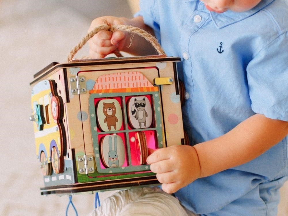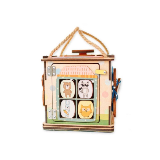 Activity board kostka so zábavnými a montessori prvkami nadchne dievčatá aj chlapcov. Jednoducho prenášateľná kostka si pre deti pripravila logické aj zábavné hry, ktoré deti zabavia a zdokonalia ich zručnosti. Každá strana activity board kostky je originálna a prináša iné dobrodružstvá. Na vrchnú strane kostky nájdete veľký slniečkový vypínač, s jeho pomocou kostku rozsvietite. Activity kostka na cesty je montessori hračkou aj nočným svetielkom (promítačkou).
