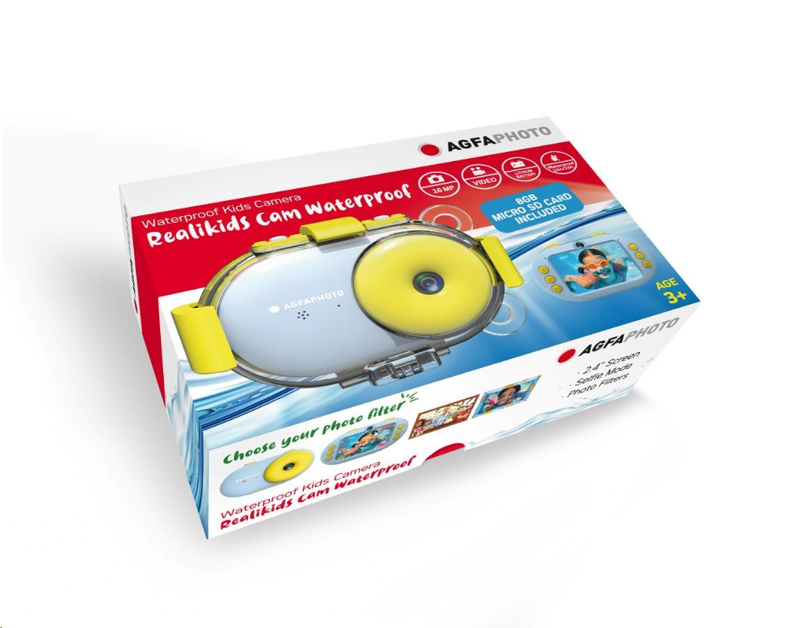 Vďaka puzdru, ktoré je vodotesné do 10 metrov, môže Realikids Cam Waterproof sprevádzať vaše deti na všetkých ich suším i podvodným dobrodružstvách. Je vybavená 2,4" LCD obrazovkou pre úspešné zarámovanie fotografií/videí a ich pohodlné prezeranie po porízení. S 8GB micro SD kartou a lítiovou batériou (súčasť balenia) je táto kamera pripravená na použitie. Jeho robustný a ergonomický dizajn zabezpečuje jednoduché použitie pre malé ruky a poteší každého malého fotografa.
