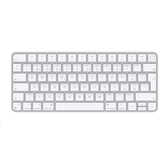 Bezdrátová klávesnice Apple Magic Keyboard s Touch ID spojuje elegantní design v bílém provedení se zdokonalenými klávesami. Díky vylepšenému nůžkovému mechanismu pro větší stabilitu a optimalizovaný pohyb jednotlivých kláves, a také díky nižšímu profilu, se na klávesnici Magic Keyboard píše mimořádně pohodlně a přesně. K dispozici má Touch ID, které vám urychlí a usnadní bezpečnostní ověřování uživatele při přihlašování a nakupování. Konektivita je řešena pomocí Bluetooth technologie a USB portu. Zabudovaná baterie má dlouhou výdrž - na jedno nabití udrží klávesnici v chodu přibližně jeden měsíc.
