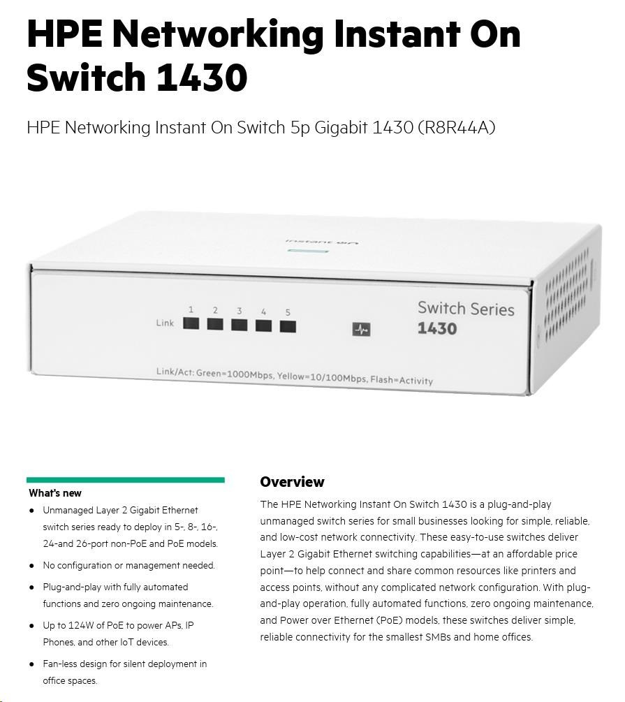 HPE Networking Instant On Switch 5p Gigabit 1430 (R8R44A)