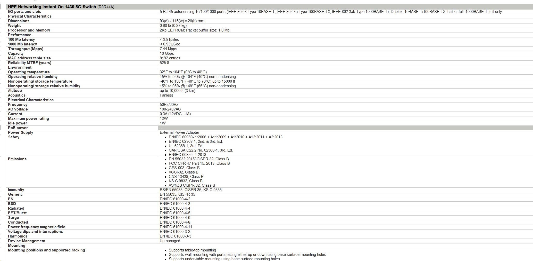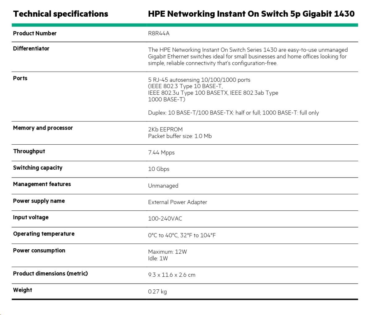 HPE Networking Instant On Switch 5p Gigabit 1430 R8R44A