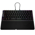 Herná klávesnica ROG Falcata 75 % s rozdelenou klávesnicou, magnetickými spínačmi ROG HFX V2 s možnosťou výmeny počas používania a snímačom ROG Hall Sensor; vybavená prepínačom Rapid Trigger, intuitívnym ovládaním a multifunkčným kolieskom, troj režimovým pripojením s bezdrôtovou technológiou ROG SpeedNova 8K, režimom Zone Mode, štyrvrstvovým tlmením a odnímateľnými silikónovými opierkami zápästia