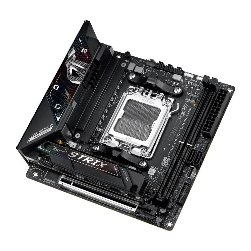 The ROG Strix B850-I Gaming WiFi integrates cutting-edge technology into a sleek mini-ITX form factor. It features PCIe® 5.0 slots for graphics and storage, dual-channel DDR5 slots and robust power delivery for top-tier gaming and heavy workloads. Meanwhile, advanced cooling solutions maintain peak performance, and WiFi 7 ensures ultra-fast connectivity. This platform delivers the power and connectivity that advanced AI PC applications demand.