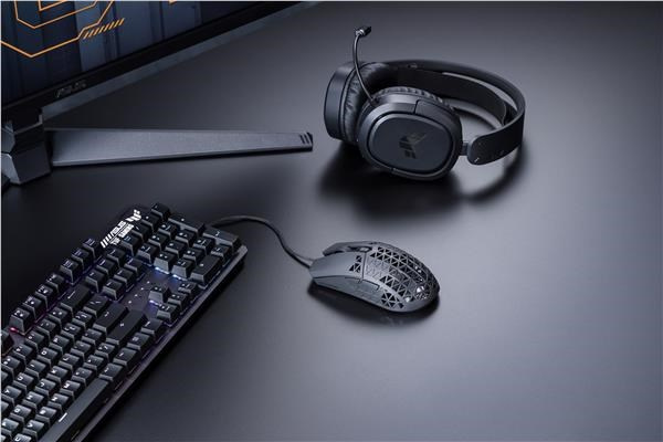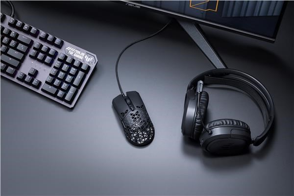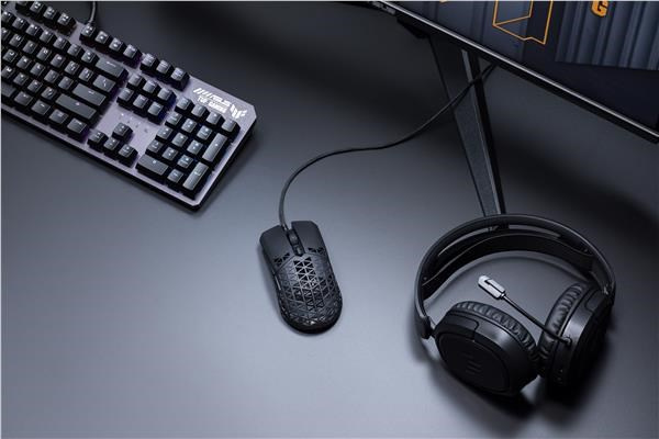 Ľahká drôtová herná myš so snímačom s rozlíšením 16 000 dpi, šiestimi programovateľnými tlačidlami, ultraľahkým plášťom Air Shell, odolnosťou voči vode IPX6, antibakteriálnou ochranou ASUS, šnúrkou TUF Gaming Paracord a čistými PTFE nožičkami