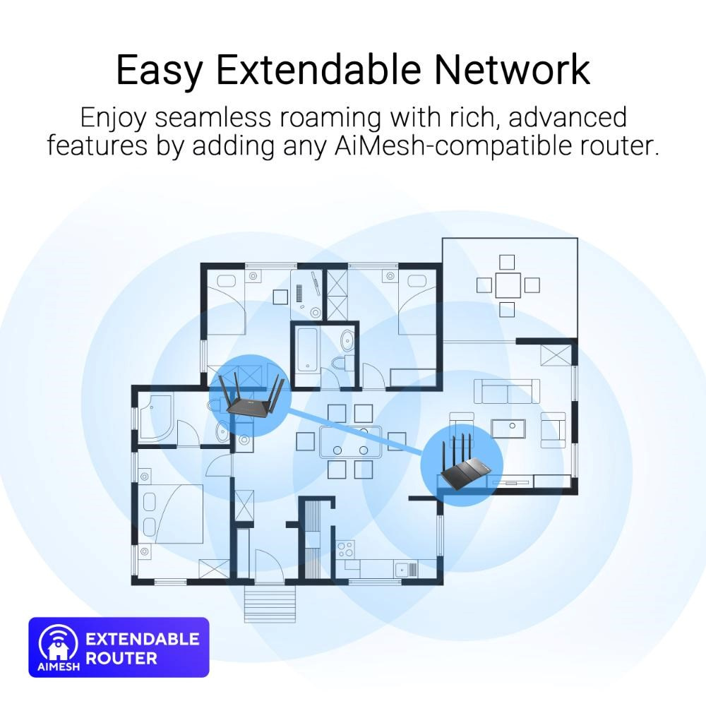 • Jednoducho rozšíriteľná sieť - Užite si bezproblémové roamingové funkcie s bohatými pokročilými funkciami pridaním akéhokoľvek routera kompatibilného s AiMesh.