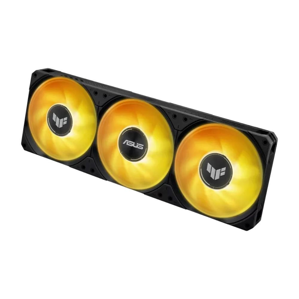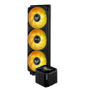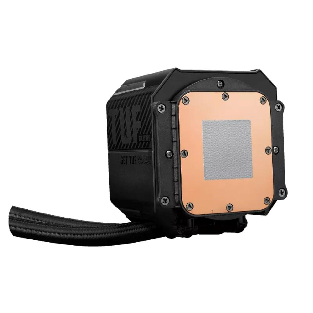 TUF Gaming LC III 360 ARGB LCD all-in-one vodný chladič CPU s predkontrolovanými a integrovanými trojitými ventilátormi navrhnutými pre vysoký prietok vzduchu a statický tlak; 2,8" LCD pre monitorovanie hardvéru, vlastné GIFy a MP4 videoklipy