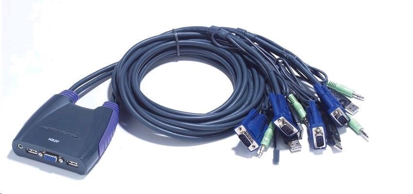 Popis ATEN KVM prepínač 4-portový VGA KVMP USB2.0, mini, audio, 0,9 m káble