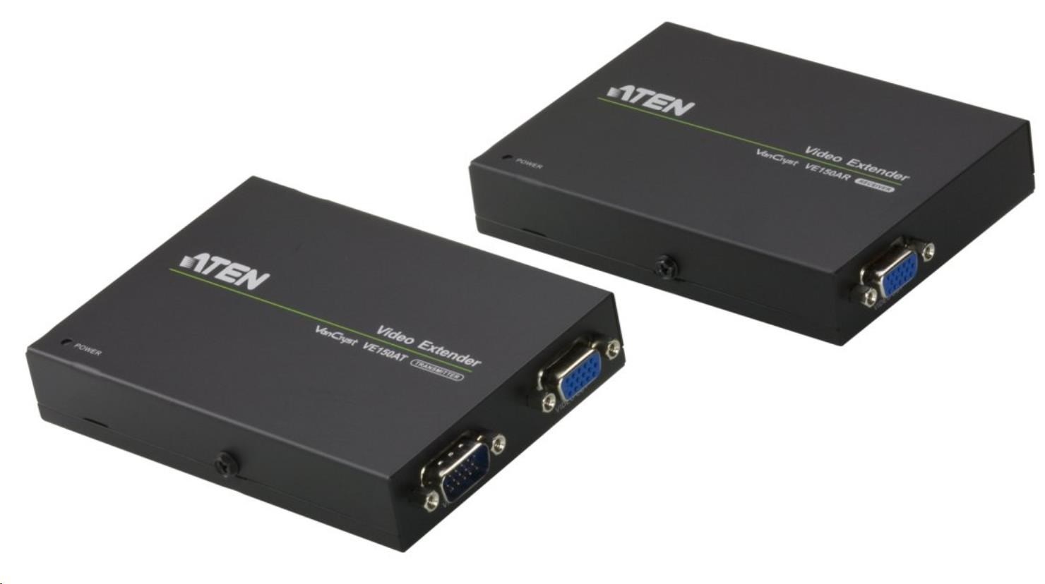 Aten VE-150A je video extender VGA na predĺženie signálu VGA až na 150 m. Umožňuje pripojenie miestneho monitora a vzdialeného monitora (do 150 m) pomocou kábla Cat5e. Maximálne podporované rozlíšenie signálu 1920x1200 pixelov do 30 m.