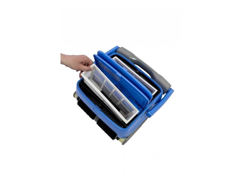 Nečistoty sa zachytávajú vo dvoch filtračných kazetách (košoch), ktoré sú prístupné zhora. Vďaka jemnosti filtračných košov (180 mikrónov) vysávač vysaje aj veľmi drobné nečistoty a vy tak budete mať žiarivo čistý bazén. Pohybom vysávača navyše dochádza k jemnému víreniu vody, čím sa výrazne zlepšuje jej kvalita a znižuje sa spotreba prípravkov na údržbu vody. Vyčistenie vysávača Orca 300 PRO je hračka. Filtračné koše jednoducho vysuniete z hornej časti, vyprázdnite ich a opláchnite pod tečúcou vodou. A vysávač je opäť pripravený na ďalšie čistenie.