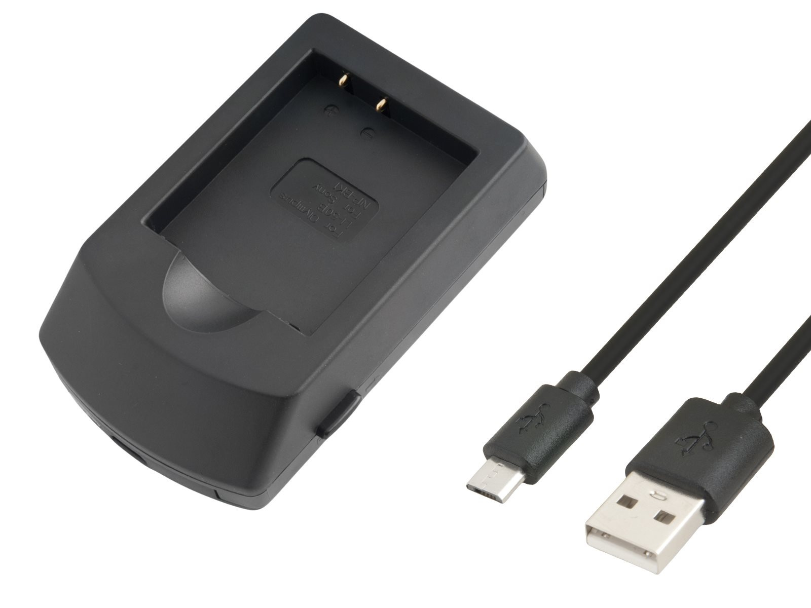 Nabíjačka so vstupom Micro-USB pre batérie pre fotoaparáty a videokamery. Pre batériu: CASIO: NP-150 OLYMPUS: LI-50B, LI-52B, LI-90B, LI-92B, Li92B SONY: NP-BK1 PENTAX: D-Li92 PANASONIC: VW-VBX090, VW-VBX090 GK, VW-VBX090-W RICOH: DB-100, DB-110 KODAK: LB-050, LB-052 Obsah balenia: manuál, nabíjacia základňa, nabíjací adaptér, kábel..