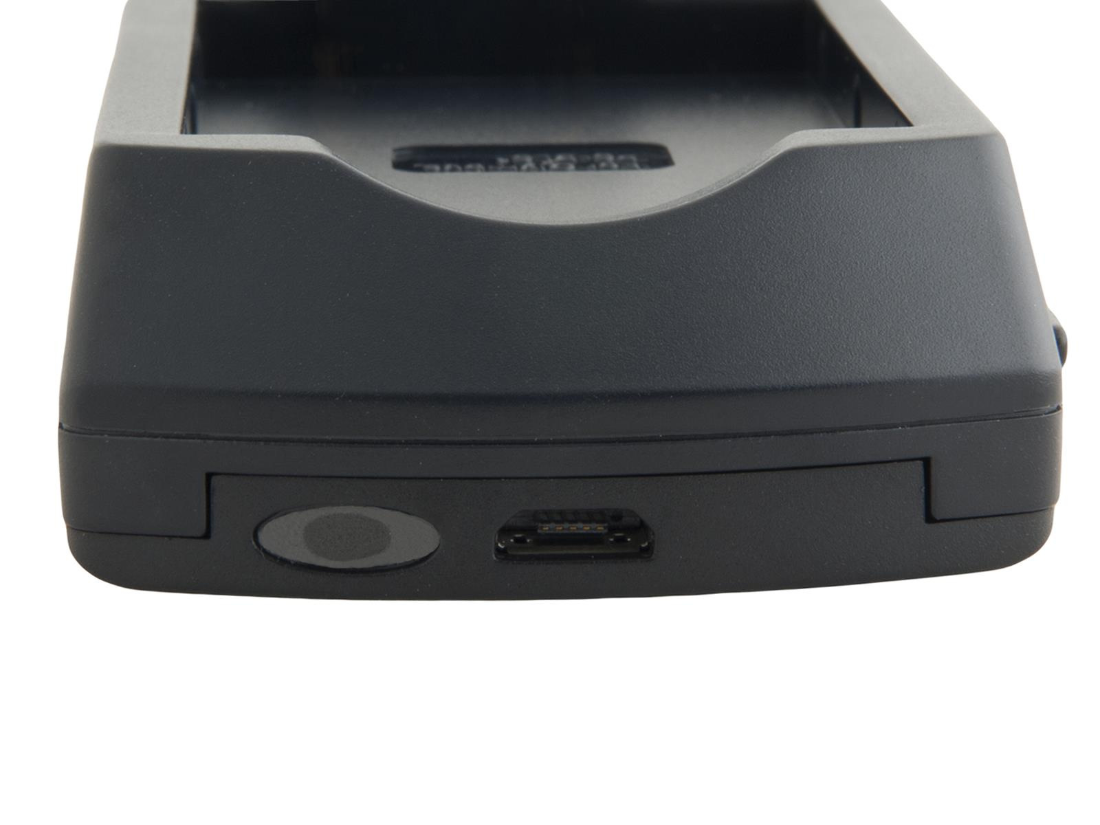Nabíječka s Micro-USB vstupem pro batérie do fotoaparátů a videokamer.