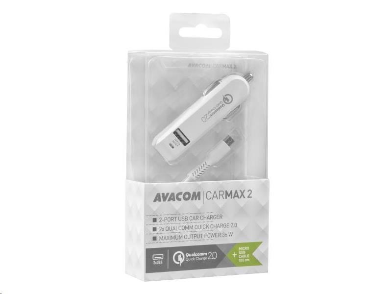 Qualcomm Quick Charge je v súčasnosti najpoužívanejšou technológiou rýchleho nabíjania na trhu. Môže byť použitý pre kompatibilné zariadenia a pri použití dátového kábla (kábel s pripojenými dátovými pinmi). Kábel, ktorý je súčasťou balenia, je kompatibilný s technológiou. Nabíjačka je vhodná pre zariadenia, ktoré podporujú QC 2.0, QC 3.0, Samsung Adaptive Fast Charging, Asus BoostMaster atď. Pri použití Qualcomm Quick Charge na oboch portoch nabíjačka umožňuje nabíjanie celkovým výstupným výkonom až 36W. Aj bez použitia technológie QC, teda pri nabíjaní bežných zariadení, ponúka AVACOM CarMAX 2 veľkú rýchlosť a nabíjanie prúdom až 2 A pre každý USB port.