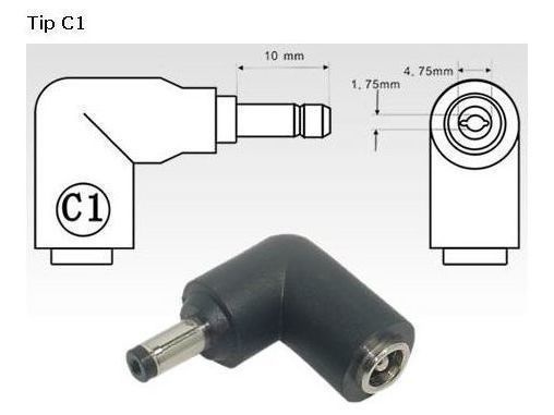 Konektor, ktorý možno použiť na redukciu konektora C.4 univerzálne napájacie adaptéry na konektor C1 (4,8 mm x 1,7 mm) vhodné pre notebooky Asus, HP, LG, Sony