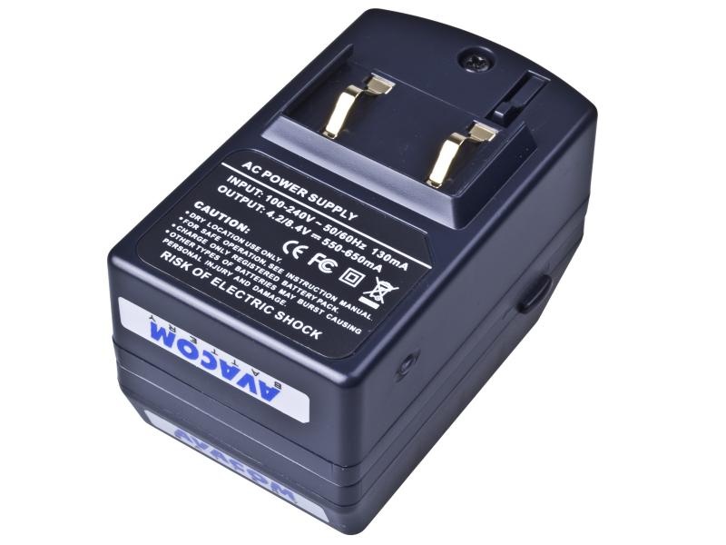 Kompaktnej sieťová nabíjačka pre batérie digitálnych fotoaparátov a videokamier.