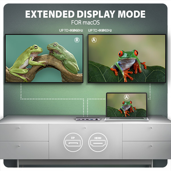 AXAGON HMC-12GM2 GEN2COMBO 12v1 USB-C 10Gbps multiportový hub rozšíri váš notebook, počítač alebo telefón o jedenásť portov a externý box pre M.2 disk. Prostredníctvom obojstranného USB-C konektora ľahko a rýchlo pripojíte k počítaču až dva monitory, štyri USB zariadenia, gigabitovú ethernetovú sieť, slúchadlá, čítačku SD kariet a NVMe alebo SATA M.2 SSD disk. Zároveň získate možnosť napájania notebooku pomocou technológie Power Delivery. Rozbočovač USB-C vám poskytne jednoduchú a kompaktnú dokovaciu stanicu 12 v 1 pre notebook, ako je napríklad Apple MacBook Air alebo Pro.