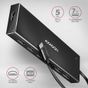 • Po vypnutí pripojeného počítača alebo bez pripojenia k počítaču funguje hub ako samostatný USB nabíjací hub s napájaním cez USB nabíjačku, stačí zapojiť štandardnú nabíjačku s micro USB konektorom do hubu (micro USB vstup).