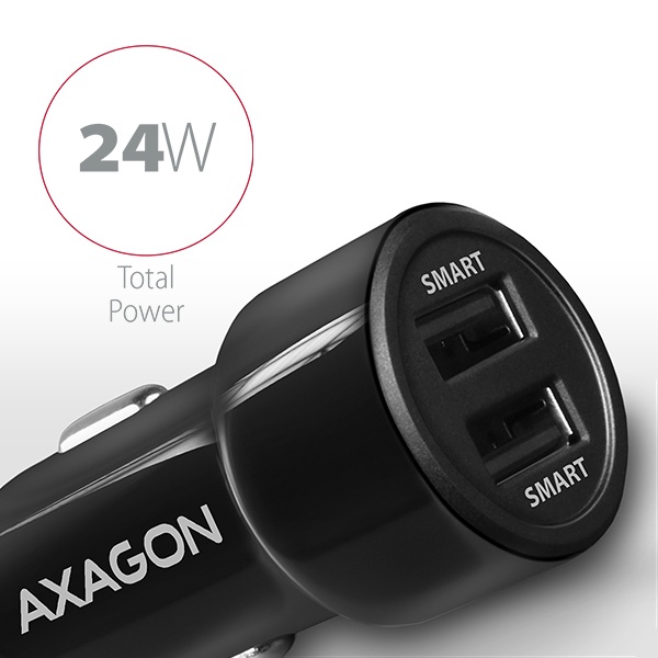 Duálna USB nabíjačka do auta AXAGON PWC-5v5 pre nabíjanie až dvoch mobilných zariadení súčasne.
