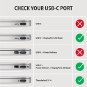 Adaptér je len jednosmerný, t. j. prevodník USB-C na HDMI, nie naopak. Aby prevodník správne fungoval, je potrebný port USB-C s podporou alternatívneho režimu DisplayPort (DP Alt Mode) alebo zariadenie s portom Thunderbolt 3/4 .