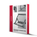 Stojan lze snadno složit do kompaktních rozměrů, což umožňuje pohodlné přenášení kamkoli potřebujete. Jeho elegantní design v šedé barvě nejen stylově doplní váš pracovní stůl, ale také přináší praktické funkce, které oceníte při každodenním používání.