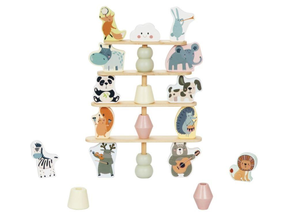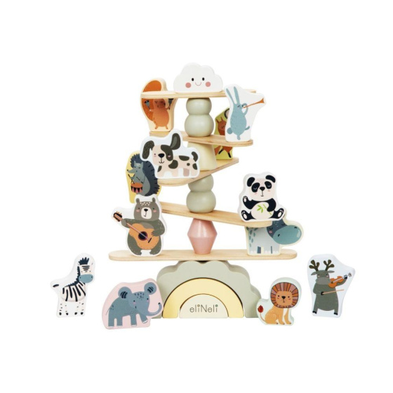 Drevená balančná hra s veselé zvieratká, doskami, kockami a s dúhou, je multifunkčná hračka, s ktorou si užijú veľa zábavy deti aj celá rodina. Pri tejto balančnej hre môže balansovať všetko, čo nájdete v balení. Akú vysokú pyramídu a čo všetko na jej výstavbu deti použijú, je čisto na ich fantáziu. Pri balančnej hre deti zdokonaľujú jemnú motoriku, koordináciu, logické myslenie, priestorovú predstavivosť, učia sa sústrediť sa a trpezlivosti.