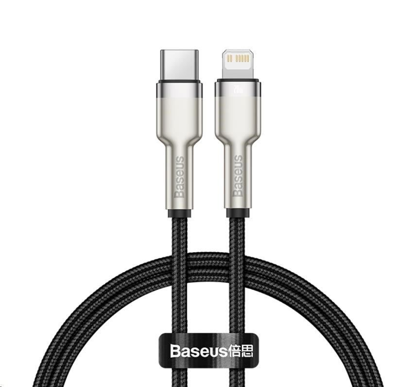 Kábel BASEUS Cafule Metal Series je odolný kábel, ktorého koncovky sú potiahnuté zliatinou zinku, aby vydržali dlhé a náročné používanie. Výrobok je tiež vybavený špeciálnym nylonovým opletením, ktoré zabraňuje treniu a chráni káble vo vnútri. Zlepšila sa aj odolnosť konektorov - boli testované na 10 000 spojení a boli špeciálne profilované tak, aby sa kábel dal používať aj vtedy, keď je telefón v puzdre. Kábel má funkciu rýchleho nabíjania a prenosu dát PD 20 W. Jeho dĺžka je 200 cm.