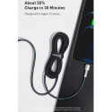 Flexibilný a odolný kovový kábel Baseus Cafule s konektormi USB-C a Lightning umožňuje prenášať dáta a nabíjať batériu v zariadeniach Apple.