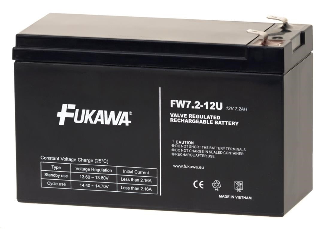 Popis Batéria - FUKAWA FW 7,2-12 F2U (12V/7,2 Ah - Faston 250), konektor - 6.3 mm, životnosť 5 rokov
