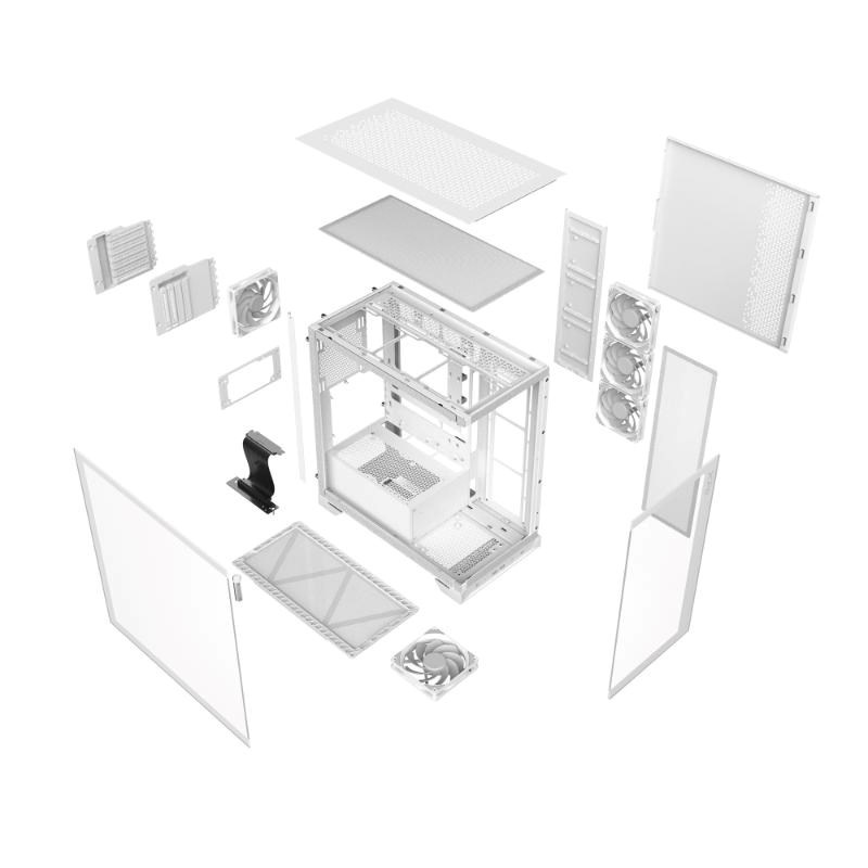4 predinštalované 120mm ventilátory s obrátenými lopatkami určené na nasávanie vzduchu z bočnej a spodnej strany systému. S elegantným dizajnom a pôsobivým osvetlením skriňa INVADER X udržiava systém dostatočne chladný a navyše vyzerá naozaj dobre. Rozsiahle testovanie ukázalo, že táto skriňa optimalizuje účinnosť chladenia, pričom výrazne znižuje teplotu GPU a základnej dosky.
