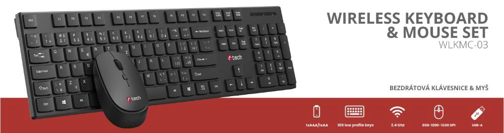 Popis BAZAR - C-TECH klávesnice s myší WLKMC-03, Bezdrátový set 2.4GHz, CZ, Černá, rozbaleno