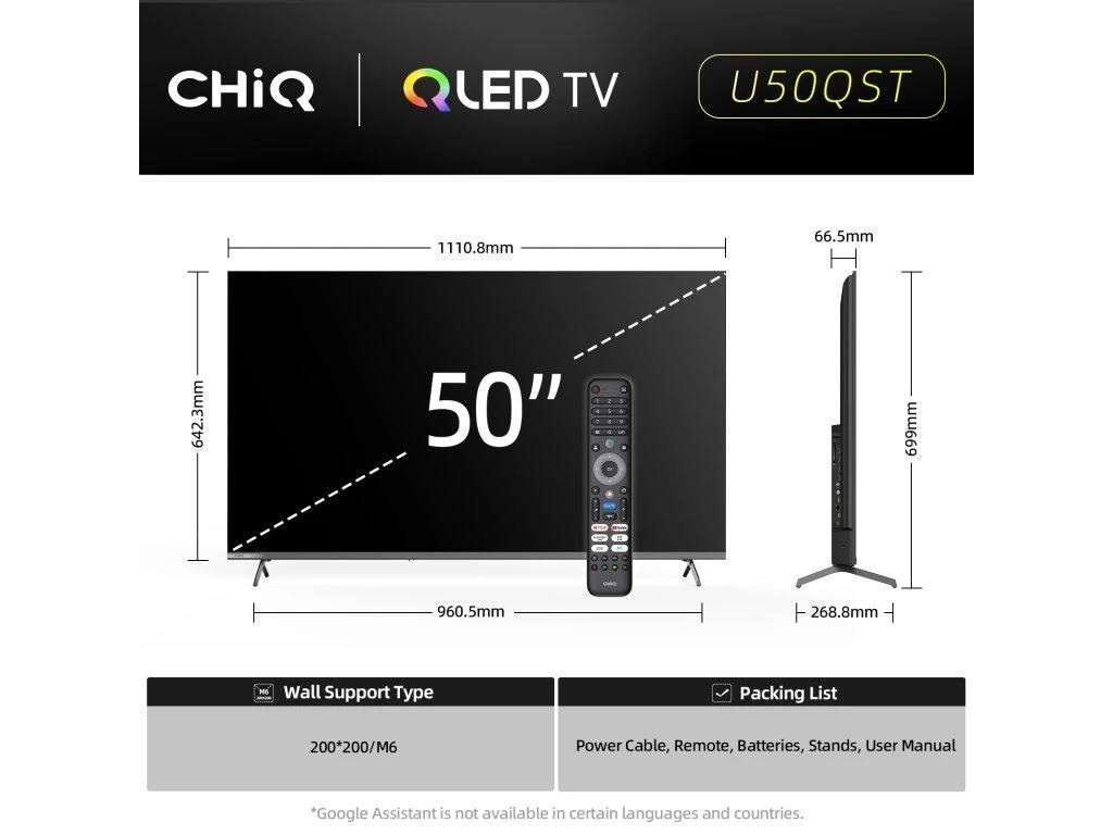 Popis BAZAR - CHiQ U50QST TV 50", UHD, QLED, ultratenká, Google TV, DLG 120 Hz, Dolby Audio, Frameless, metalická - Poškozený