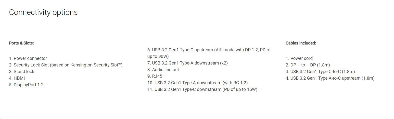 | Cable Included | - 1 x DisplayPort kábel - DisplayPort na DisplayPort - 1,8 m
