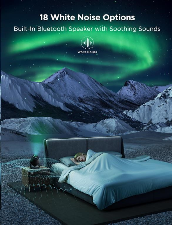 Govee Star Light Projector nabízí 18 přednastavených vzorů bílého šumu, které vám pomohou navodit klidnou atmosféru a podpořit relaxaci nebo lepší spánek. Kromě toho může projektor fungovat i jako Bluetooth reproduktor, což vám umožní přehrávat vlastní hudbu nebo audioknihy přímo z vašeho zařízení. Ať už preferujete relaxaci při bílém šumu, nebo chcete, tento projektor vám poskytne všestranné zvukové možnosti pro každou situaci.