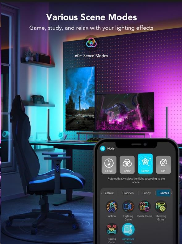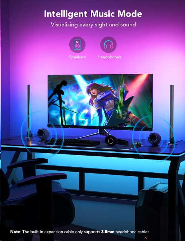 Vylepšete své herní, filmové a hudební zážitky s chytrými světelnými panely Govee Smart Gaming. 16 milionů barev s 62 režimy a 8 režimů pro synchronizaci s hudbou povznesou zážitek ze sledování televize nebo hraní her na novou úroveň. Ovládají se hlasem přes Siri, Amazon Alexa nebo Google Assistant, přes aplikaci nebo přes Smart Dual ovladač. Nebudete proto ani muset vstávat z gauče. Barevné podsvícení opticky zvětšuje obraz, šetří oči a má živostnost až 50.000 hodin.