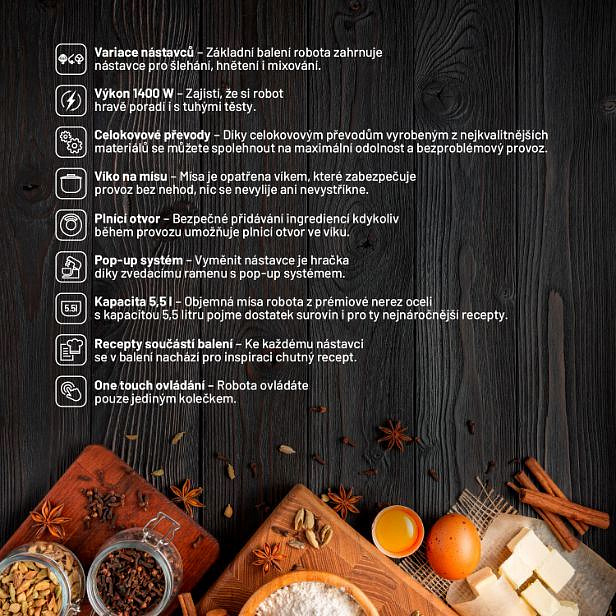 Popis BAZAR - Lauben Kitchen Machine 550BC - Poškozený obal (Komplet)