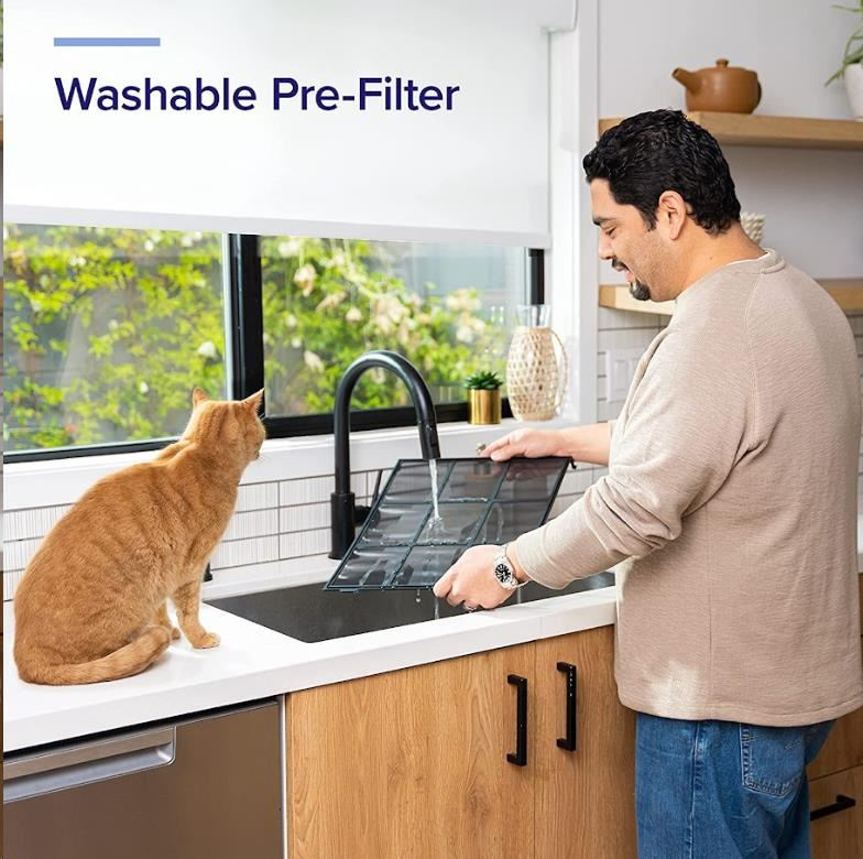 Táto čistička vzduchu je ideálna pre majiteľov domácich zvierat, pretože jej veľký vstup vzduchu v tvare písmena U pomáha predchádzať upchávaniu srstou, takže filtračný systém môže vždy účinne plniť svoju úlohu. Stačí klepnúť na režim Pet Mode v bezplatnej aplikácii VeSync a čistička Vital 100S bude striedavo používať stredné a vysoké otáčky, aby sa znížil zápach a odstránila sa srst domácich zvierat. Tým udržíte svoj domov svieži a energeticky úspornejší. Zároveň sú najväčšie nečistoty zachytené na umývateľný predfiltr, ktorý jednoducho umyjete a ušetríte na opotrebovaní filtra a tým aj na vašich financiach.
