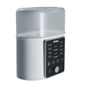 Obávate sa veľkého množstva tlačidiel a programov? Zabudnite na ne. Ovládanie je naozaj jednoduché a na ovládacom paneli sa každý zorientuje raz-dva. Sú na ňom tlačidlá na zapnutie a vypnutie, na zníženie či zvýšenie teploty a na zmenu režimu. Prístroj stačí len zapnúť a vybrať požadovaný program, prípadne si individuálne nastaviť čas (až 24 hodín) a teplotu (až 100 °C). Na displeji potom prehľadne uvidíte všetko. Po ukončení vybraného programu sterilizátor pípne a následne sa aj sám vypne. A čistenie? To zvládnete jednoducho a ekologicky s tým, čo máte doma. Na bežnú údržbu stačí vlhká handrička. Vodný kameň raz za čas odstránite pomocou vody, octu a programu na varenie vajíčok.