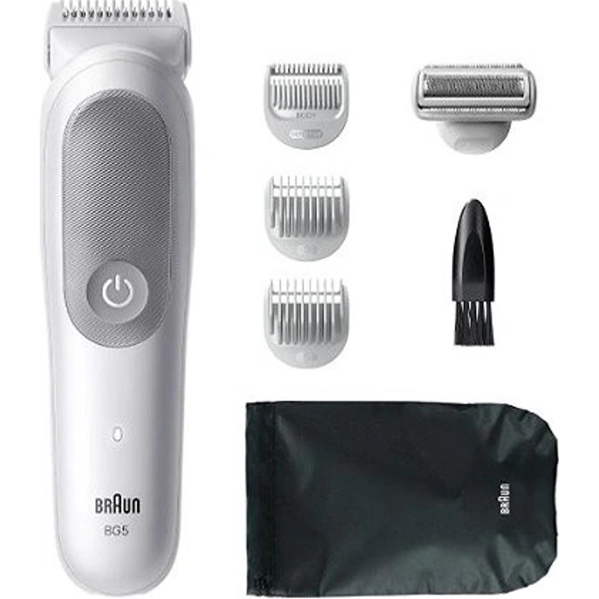 Zastřihovač Braun BG5550 kombinuje technologii SkinGuard pro citlivou pokožku, omyvatelné provedení pro použití ve sprše a sadu nástavců pro délky 0,5–5 mm. Díky li-ion baterii (100 minut provozu) a rychlému nabití je ideální pro pravidelnou domácí péči těla i detailní úpravy.
