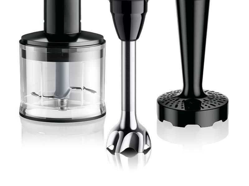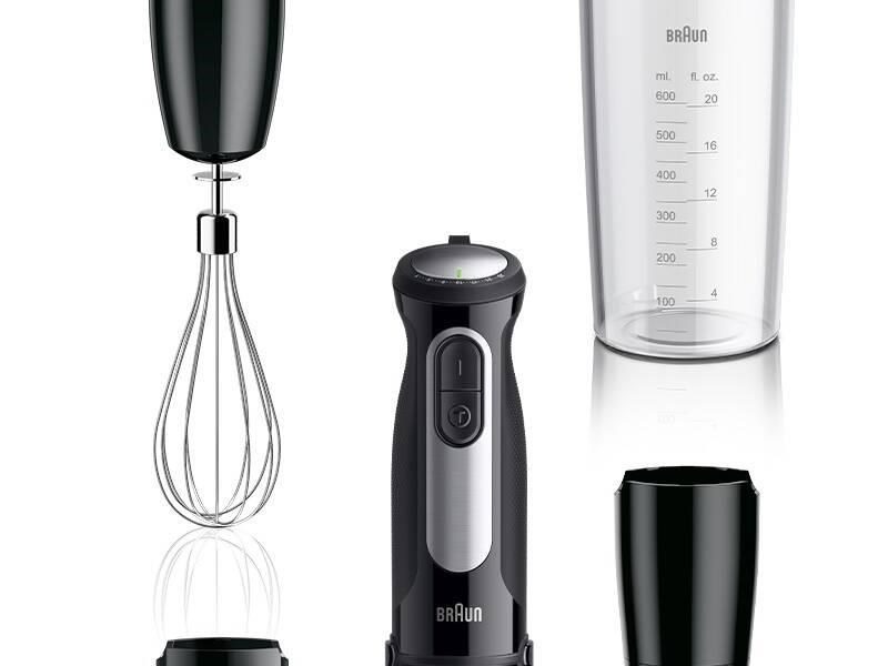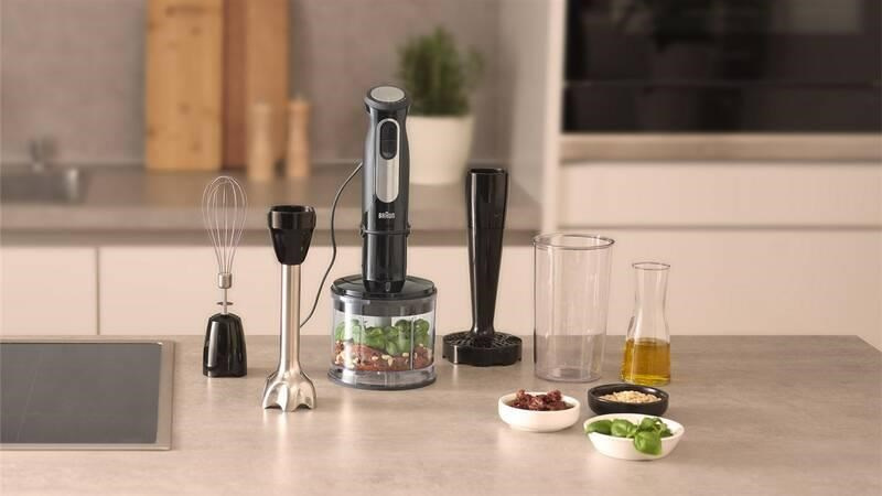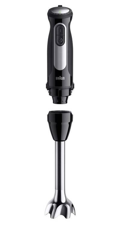 Ponorný mixér Braun MQ55.307M MultiQuick 5 Pro sa stane vaším nepostrádateľným pomocníkom v kuchyni. Poteší svojím špičkovým výkonem, ktorý dosahuje 1 000 W. Vybrať si môžete z 25 rýchlostí a režimu Turbo, ktorý z prístroja počas okamihu vytiahne maximum. Manipuláciu s prístrojom uľahčuje prítomnosť ergonomickej rukoväte. Samozrejmosťou je veľmi jednoduché ovládanie, ktoré si ľahko osvojíte. Výmenu jednotlivých nástavcov a príslušenstva zjednodušuje systém EasyClick Plus.